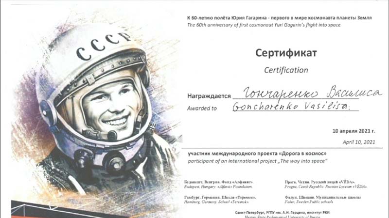 На память об участии в международном телемосте «Дорога в космос» участникам были вручены сертификаты.