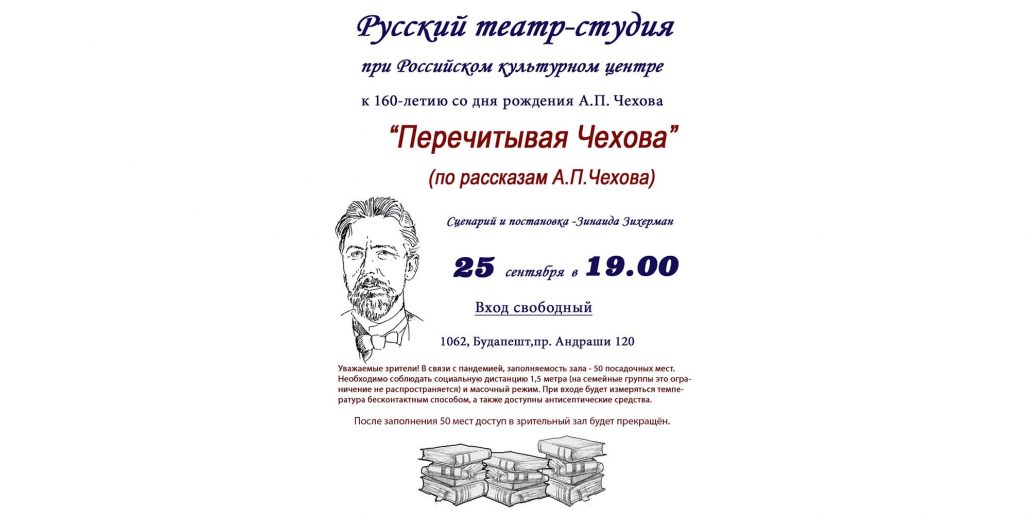 25-го сентября 2020 в 19.00 Русский театр-студия при Российском культурном центре г. Будапешт открывает 24 театральный сезон! К 160-летию со дня рождения А.П.Чехова будет показан […]